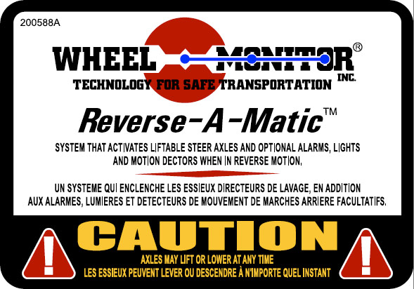 This decal was made with safety in mind! We encourage trailer OEM's to place this sticker on the trailer visible to any person that will be doing maintenance on the trailer. It is important for anyone doing work on the trailer to be aware that the trailer is equipped with the Reverse-A-Matic.